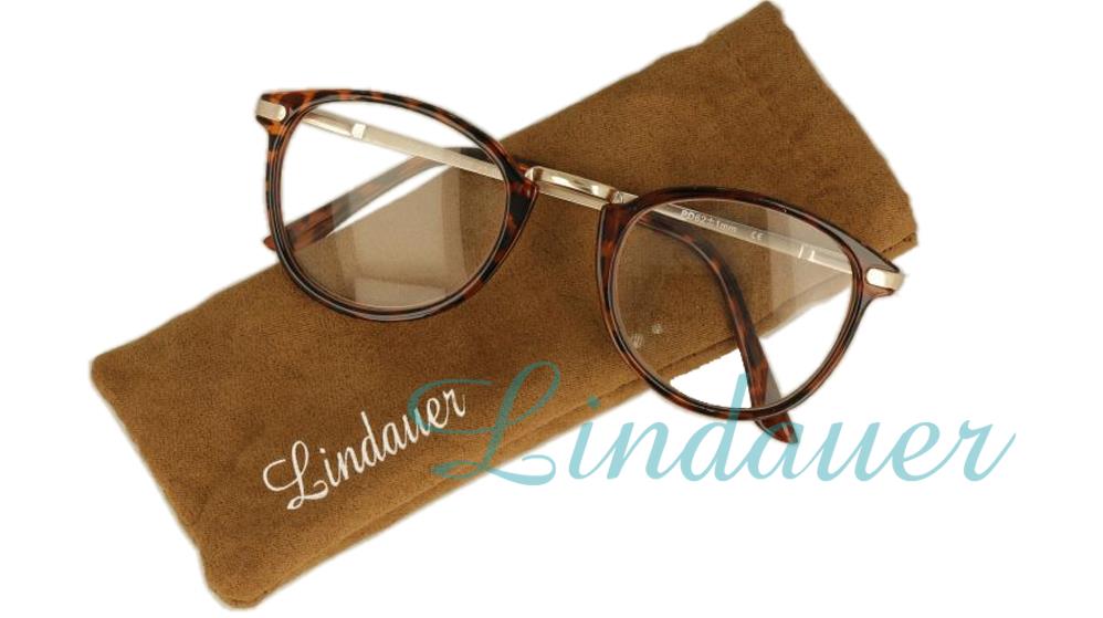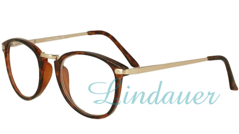 Lindauer Lesehilfe mit demi-brauner Front und gold-schimmernden Bügeln, inkl. passendem Etui